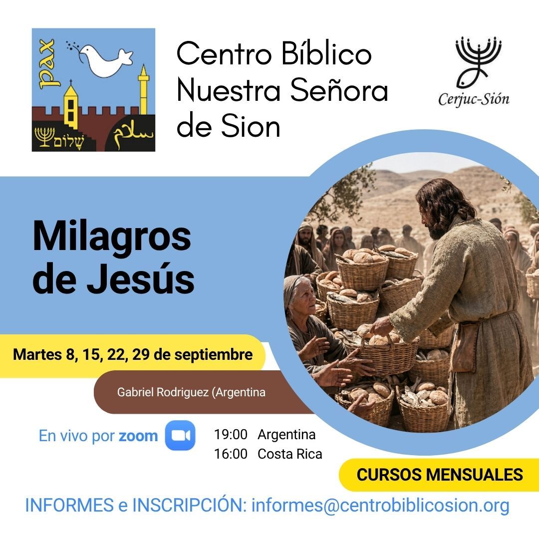 Durante este año, los cursos mensuales de los días martes, están programados y llevados a cabo en un proyecto colaborativo entre el Centro Bíblico de Buenos Aires (Argentina) y CERJUC (Sion-Costa Rica).